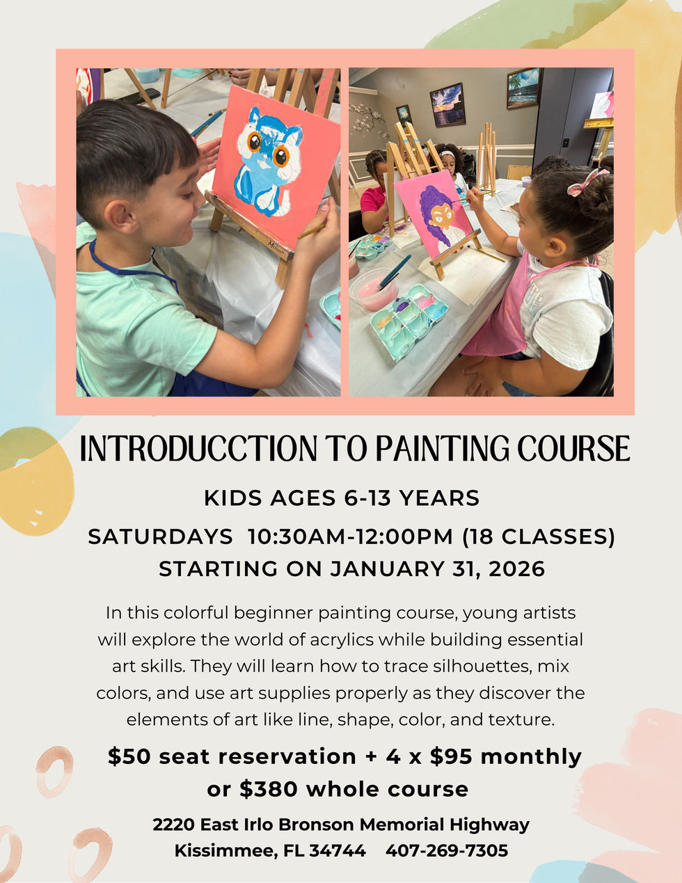 By being able to see your teacher's demonstration while drawing or painting and consistently practicing, we can guarantee that in as little as a couple of months, you will see significant growth in your artistic skills.